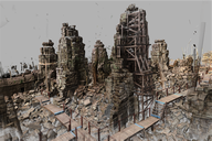 その中でも中央塔の劣化は激しく、石材の落下により複雑な構造となっている。